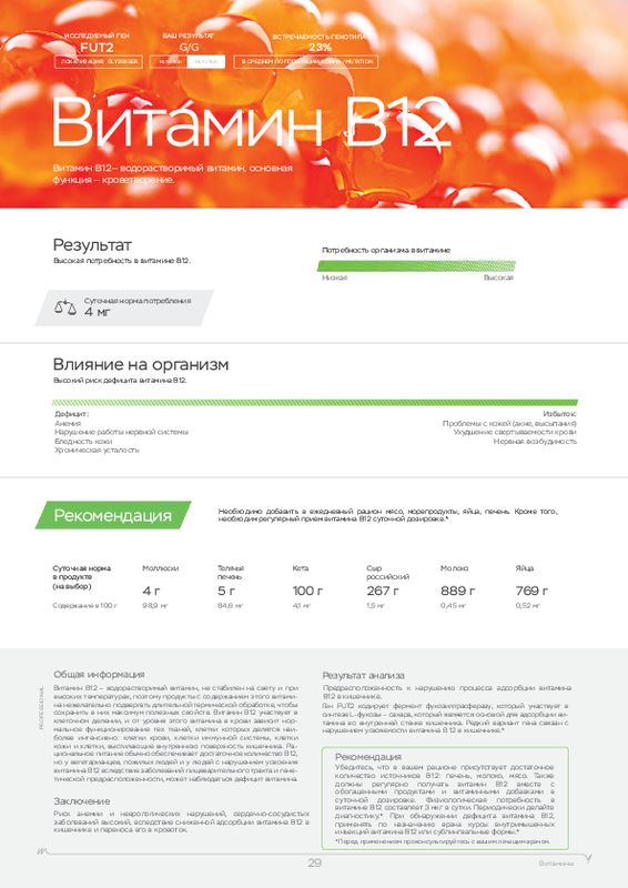 - Метаболизм витаминов и потребность (A, B6, B9, B12, C, D, E).